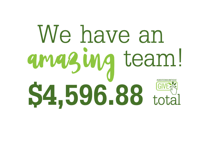 We started the day with a goal to raise $3,000, but our BIG goal was to have the most donors from 1-2pm. As a team, we unlocked the $1,750 prize we were hoping for with our 110+ donors!