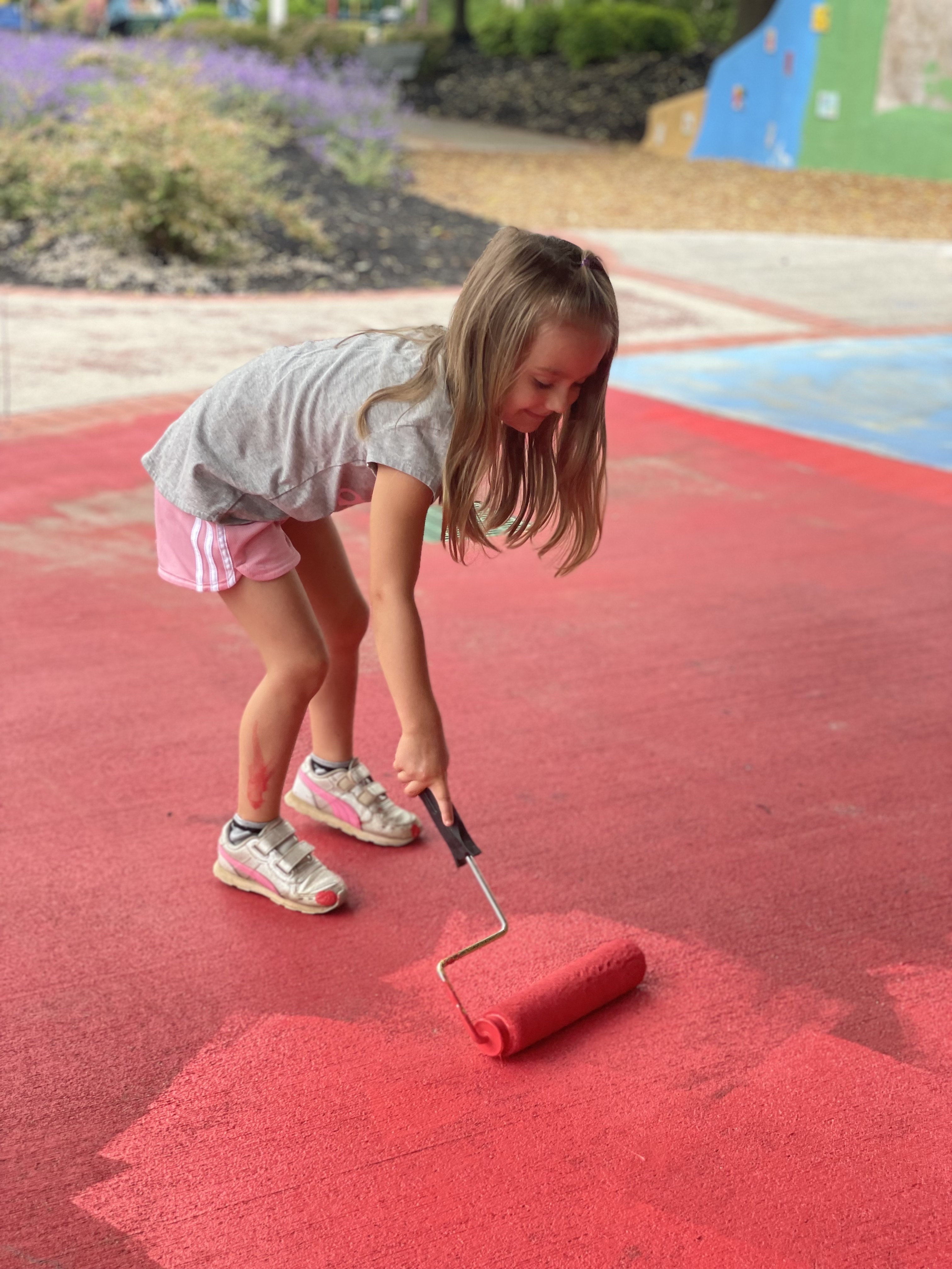 From Brian Mancini, Acting Director of Harrisonburg Parks and Rec: Sixteen of our swimmers (from ages 5 and up), along with parents spent several hours getting dirty and even a little paint-splotched and the results are now being enjoyed by children from our area.